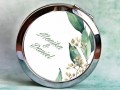 zrcátko - otevírací, průměr 70 mm, průměr motivu 57 mm nebo 65 mm, obsahuje 2 zrcátka - běžné a zvětšovací (kosmetické), barva platinová