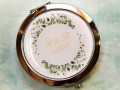 zrcátko - otevírací,průměr 70 mm, průměr motivu 57 mm, obsahuje 2 zrcátka - běžné a zvětšovací (kosmetické), barva platinová