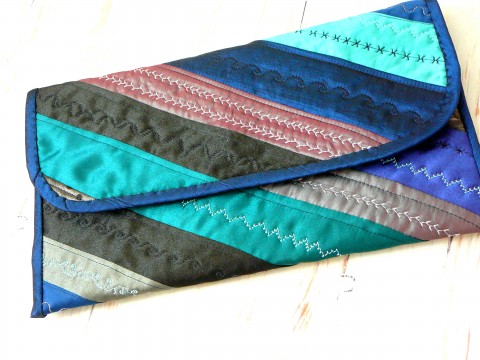 Elegantní psaníčko pro sváteční příležitosti z luxusních saténových látek dozdobené strojovou výšivkou. Zapínání na magnet.