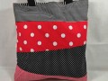 taška ušitá z bavlněných puntíkatých a proužkovaných látek