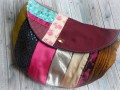 Taštička ušitá z různých látek doplněná všelijakými stuhami a flitry.