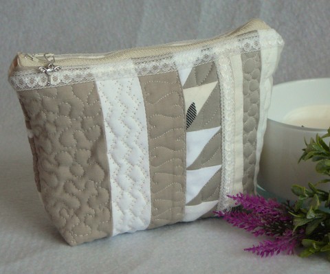 Originální taštička v béžových tónech, použité bavlněné látky,