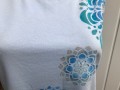 Ručně malované triko kvalitními barvami na textil, velikost M, v pase projmuté, 100% bavlna, barva světle modrá