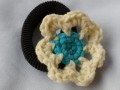 háčkovaná kytička je pevně přišitá na gumičce v černé barvě