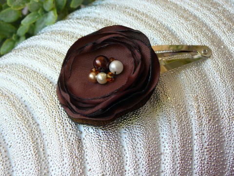 Na přání květinu připevním na vlásenku nebo sponu krokodýlek, pokud nebude uvedeno přání, bude dodaná květina na sponce pukačce.