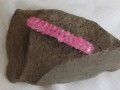 neonově růžovými korálky.
