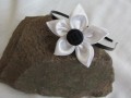 Krásná černá čelenka ozdobená krásným bílým květem .